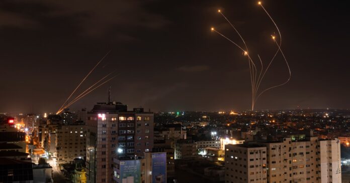 ARCHIVO – Cohetes disparados desde Gaza e interceptados por el sistema antimisiles israelí Cúpula de Hierro sobre el cielo israelí se ven desde la Ciudad de Gaza, el 13 de mayo de 2023. (AP foto/Fatima Shbair, archivo)