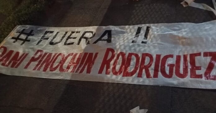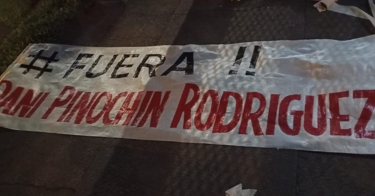 En las pancartas que colocaron sobre las rejas del hogar de Rodríguez, se puede apreciar que escribieron “Fuera Dani Pinochin Rodríguez!!” y “Renunciá Dani y todos los miembros de la C.D. del fracaso. No jueguen con la ilusión de la gente” respectivamente.
