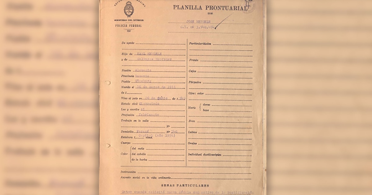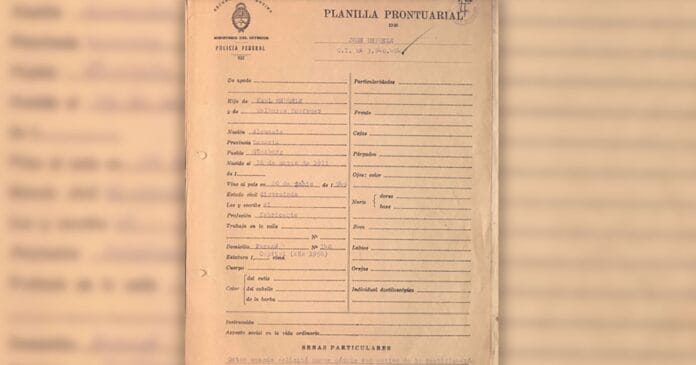 Uno de los primeros indicios sobre el paradero de Mengele es una planilla prontuarial elaborada por la Policía Federal el 26 de noviembre de 1956, cuando el propio Mengele solicitó la rectificación de su nombre en la cédula de identidad.