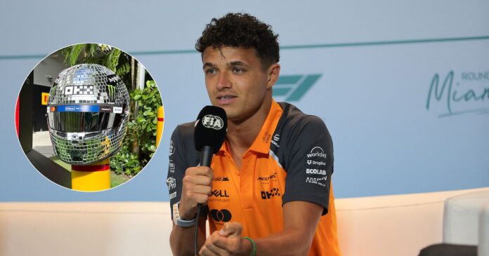 Este casco, decorado con múltiples espejos que evocan las clásicas bolas de discoteca, es una muestra más de la creatividad que Norris desplegó en este circuito, donde anteriormente sorprendió con un casco inspirado en una pelota de básquet.