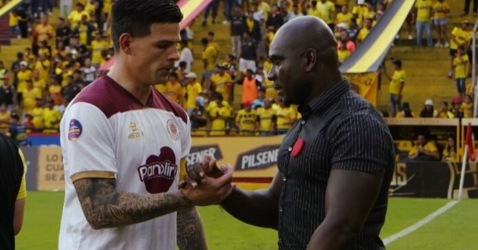 Resulta que el estratega del Ídolo apareció en el Estadio Monumental Banco Pichincha vestido con una camisa negra a rayas finas blancas y mangas cortas. Y completó el outfit con pantalón oscuro y zapatos del mismo tono. Eso sí, en el look se destacó un pin circular rojo que generó una ola de comentarios entre los fanáticos.
