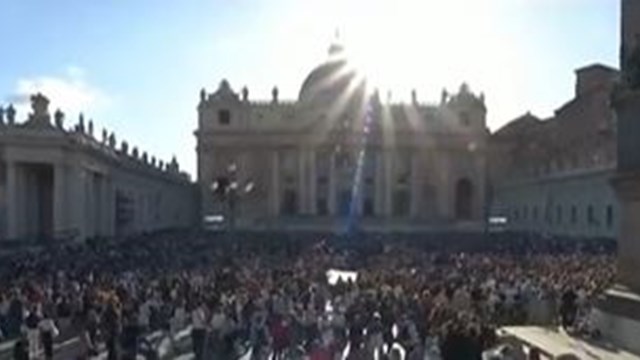 La multitud reunida en la plaza de San Pedro vitorea al ver la fumata blanca