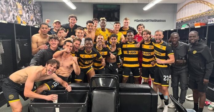 El festejo de Beto Ydrach ante NYCFC por la US Open Cup. Foto: IG de Pittsburgh Riverhounds SC