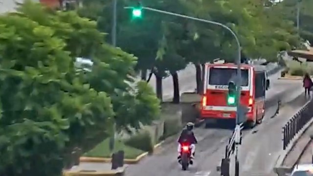 Las cámaras de seguridad permitieron observar a uno de los ladrones vestido de negro y al otro con campera negra y pantalón gris, desplazándose por las inmediaciones de la Plaza Roca. Luego de ser visualizados, se dio aviso al 911, lo que activó una persecución policial por varios tramos de la Ruta 8. Durante la huida, los motochorros utilizaron el corredor del Metrobus, hasta que colisionaron contra un colectivo escolar a la altura de la calle Rivero. A pesar del impacto, que destruyó por completo la moto, los delincuentes intentaron escapar a pie en direcciones opuestas.