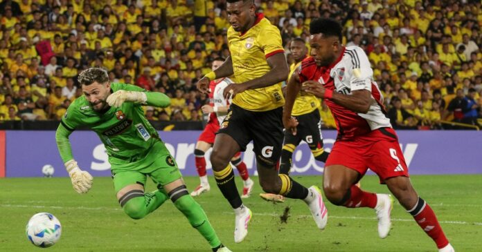 Los Toreros lucieron mal en defensa, algo que River aprovechó para convertir tres goles y llevarse el triunfo. Al ver que los argentinos convertían goles con facilidad, la hinchada presente en el Estadio Banco Pichincha empezó a insultar a Gustavo Vallecilla al considerar que falló en los goles recibidos.