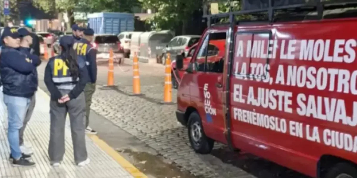Los siete detenidos tienen entre 20 y 27 años y fueron demorados por tres horas. La camioneta escribía la frase: “A Milei le molesta la tos, a nosotros el ajuste salvaje” y un altoparlante con ese mensaje y sonidos de toses.