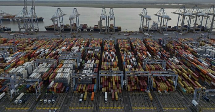 Contenedores de mercancías esperan a ser procesados en un puerto. (AP Foto, archivo)