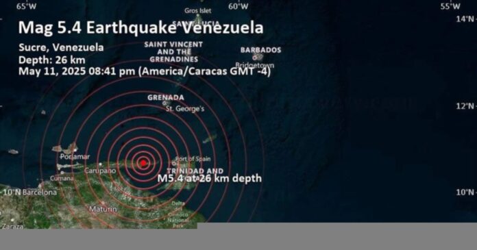 El temblor fue registrado a 23 kilómetros al noreste de Güiria, a las 20:41 hora local, según dicho organismo, y tuvo lugar a una profundidad de 73,7 kilómetros.
