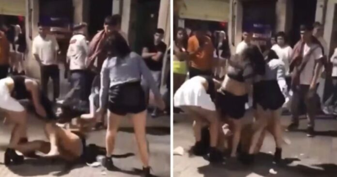 En cuestión de minutos, la escena se volvió incontrolable. Varios vehículos estacionados se convirtieron en obstáculos para las mujeres que intercambiaban golpes, mientras gritos y empujones se multiplicaban. Los transeúntes, sorprendidos, intentaron intervenir sin éxito, y algunos optaron por grabar el violento episodio.