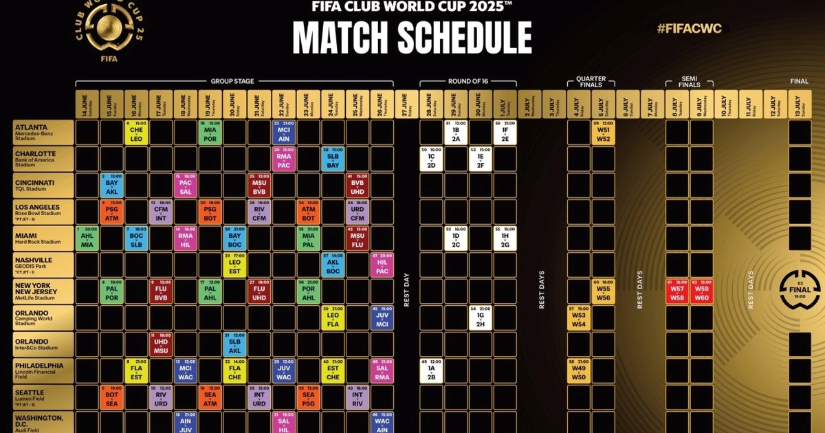 Calendario del Mundial de Clubes 2025, día a día
