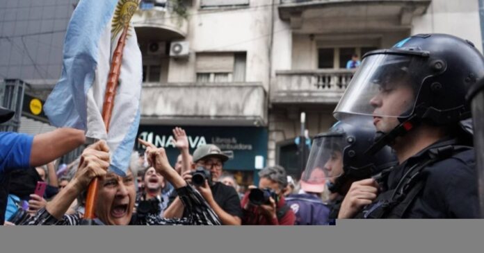 Sin embargo, el clima de la movilización se complicó cuando la columna de manifestantes bloqueó la Avenida Callao. Ante esta situación, efectivos de la Policía Federal y de la Prefectura Naval avanzaron para despejar la arteria, lo que derivó en forcejeos y empujones entre los jubilados y las fuerzas de seguridad.
