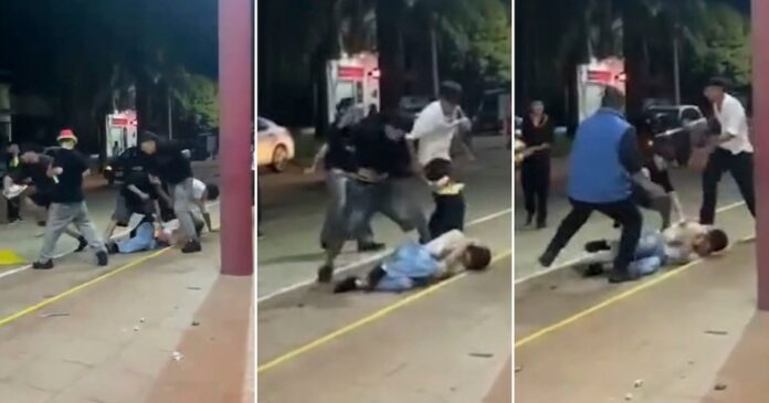 En las imágenes se observa cómo varios agresores lo atacan mientras está en el piso, dándole patadas en la cabeza y golpes en distintas partes del cuerpo.