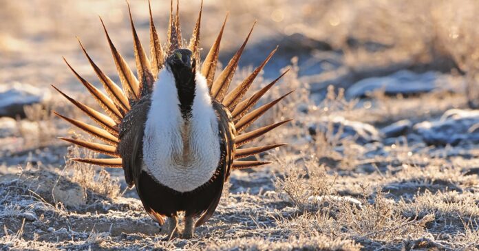 Un macho de urogallo de las artemisas en su exhibición de apareamiento (Crédito: Flickr)
