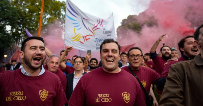 Así, los militantes mayormente provenientes del mundo de las redes usaron un tono bordó, bien diferenciado del violeta original de LLA, que sí respetó la militancia de Karina Milei, convocada por Sebastián Pareja y Pilar Ramírez. Ante distintas consultas, en “LFC” remarcaron que la intención fue demostrar fuerza y coherencia; que son “una agrupación” y no “un grupo coyuntural”.