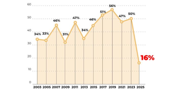 Porcentajes de participación en competencias electorales en la Ciudad de Buenos Aires (1997-2025)