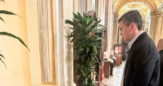 El presidente de Paraguay, Santiago Peña, visitó este sábado la Basílica de Santa María la Mayor en Roma, donde se encuentra la tumba del papa Francisco, a quien agradeció “por tanto cariño” hacia el Paraguay.