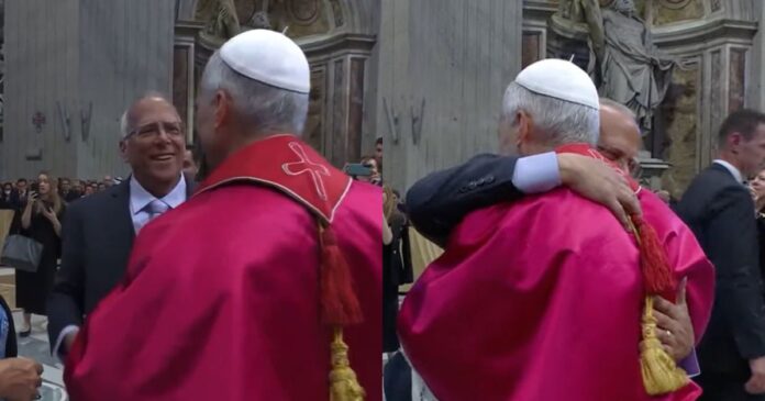 Tal como se ve en las imágenes, no solo se fundieron en el abrazo, sino que el pontífice intercambió, en comparación con los demás, mayor alegría y tiempo. Su hermano y quien sería su esposa fueron parte de la delegación de Estados Unidos.