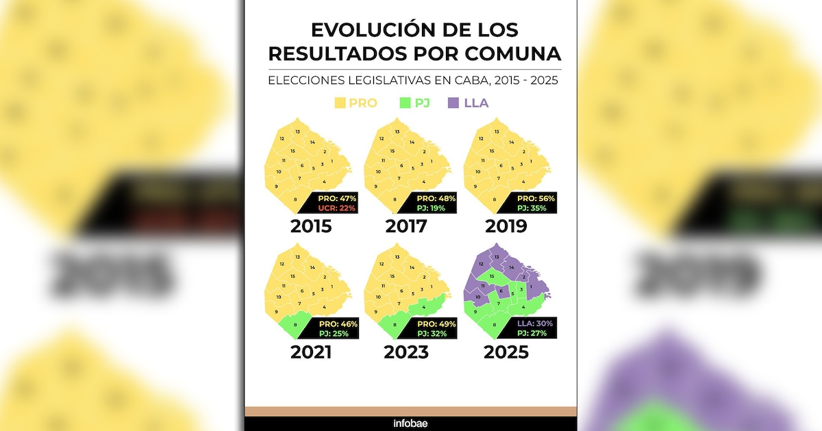 Por primera vez, tras gobernar por 18 años la Ciudad de Buenos Aires, el PRO quedó en tercer lugar en las elecciones en CABA. De acuerdo con el mapa electoral, el partido amarillo no ganó en ninguna comuna porteña, el resultado es muy distinto a los números que supo recolectar durante los comicios de 2021 y 2023. El escenario cambió aún más si se tiene en cuenta el desempeño que tuvo en las urnas desde 2015.