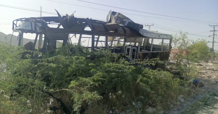 Restos del autobús alcanzado por la explosión, en un nuevo episodio de violencia en el suroeste de Pakistán