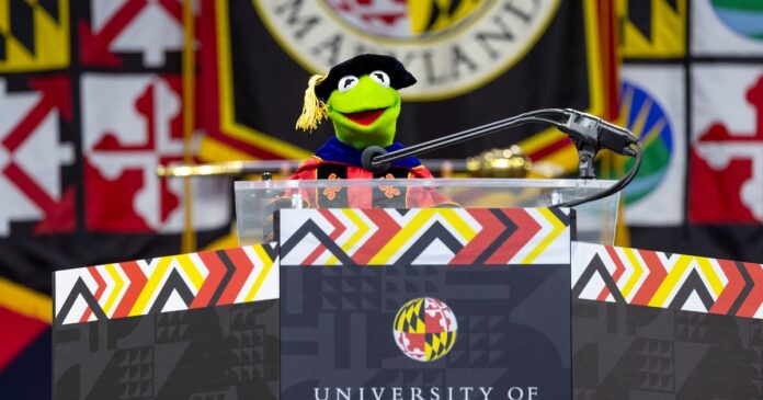 El legado de Jim Henson, creador de la Rana René, resuena en la Universidad de Maryland durante el acto de graduación. (Stephanie S. Cordle/University of Maryland/Handout via REUTERS)