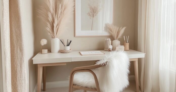 Siempre los tonos neutros otorgan paz y claridad mental, y también un esquema de color blanco o neutral amplifica la luz y crea una sensación de amplitud, lo que resulta especialmente útil en espacios de trabajo pequeños.