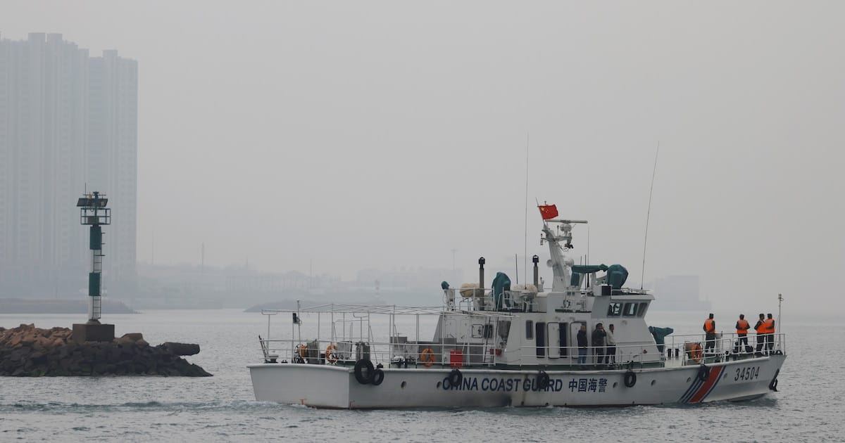 Un buque de la Guardia Costera de China frente a la costa de Qingdao, provincia china de Shandong, tras un vertido de petróleo en el Mar Amarillo (REUTERS/Carlos Garcia Rawlins)