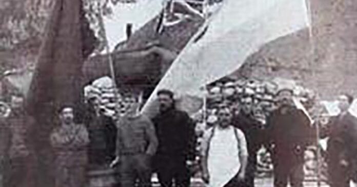 La primera bandera en la Antártida
