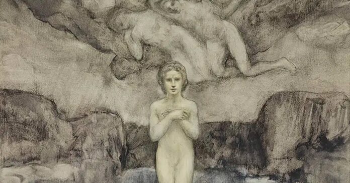 «Hacia el Infinito (Kamila Gibran, madre del artista)» Kahlil Gibran (libanés, Bsharri 1883-1931 Nueva York), 1916, acuarela y grafito sobre papel, 21,2 × 27,5 cm. No expuesto. MET de Nueva York