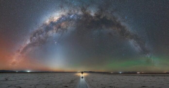 La toma obtenida por la fotógrafa marplantese fue realizada por la noche en las Salinas Grandes, provincia de Jujuy, y muestra una espectacular panorámica del cielo nocturno.