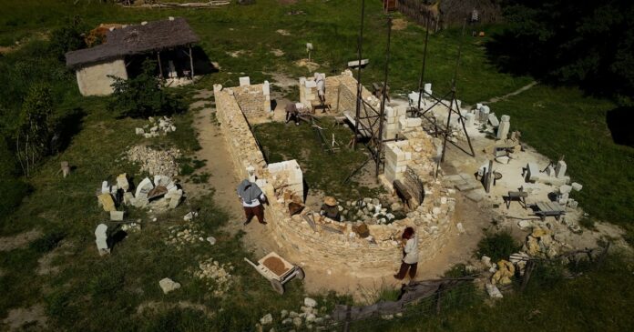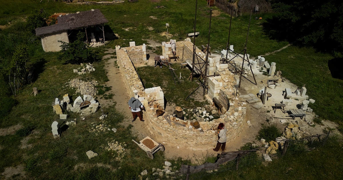 Voluntarios y expertos trabajan juntos en la edificación de una capilla románica, un claustro y una iglesia gótica